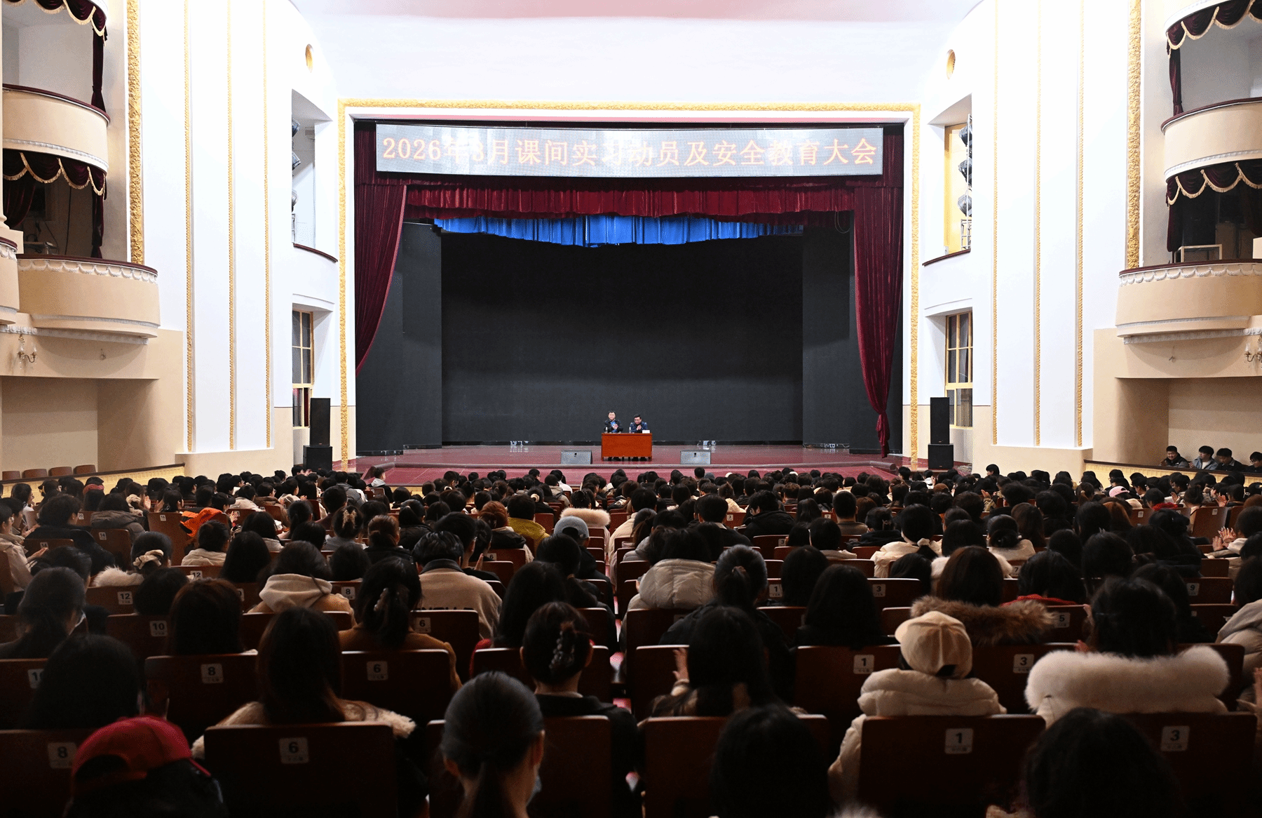 3月10号下午,学校在主楼礼堂召开2026年3月课间实习动员及安全教育大会,对即将参加课间实习的2023级针灸推拿学专业、中西医临床医学专业、中医康复学专业共789名学生进行动员,作实习工作部署,并开展安全教育。