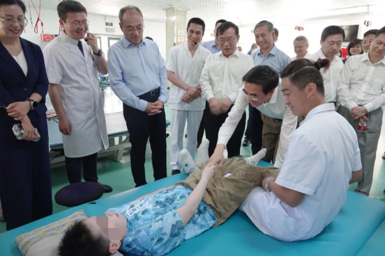 7月4日,全国政协常委、社会和法制委员会副主任阮成发带领全国政协社会和法制委员会专题调研组一行20余人来到我校附属第四医院太阳岛院区,就“完善残疾人社会保障制度和关爱服务体系”开展专题调研。全国政协常委、社会和法制委员会副主任钱锋,全国政协常委、社会和法制委员会委员程凯等参加调研,黑龙江省政协副主席兼秘书长张亚中,黑龙江省残疾人联合会党组书记、理事长关威,哈尔滨市政协副主席徐伟,我校校长郭宏伟等领导陪同调研。