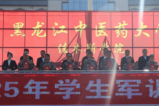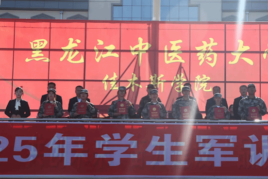 9月29日,佳木斯学院2025级学生军训成果汇报大会在学院体育场举行。学院党委书记杜徽、院长张丽宏、党委副书记张勇,武警佳木斯市支队副大队长崔转转出席大会并在主席台就座。