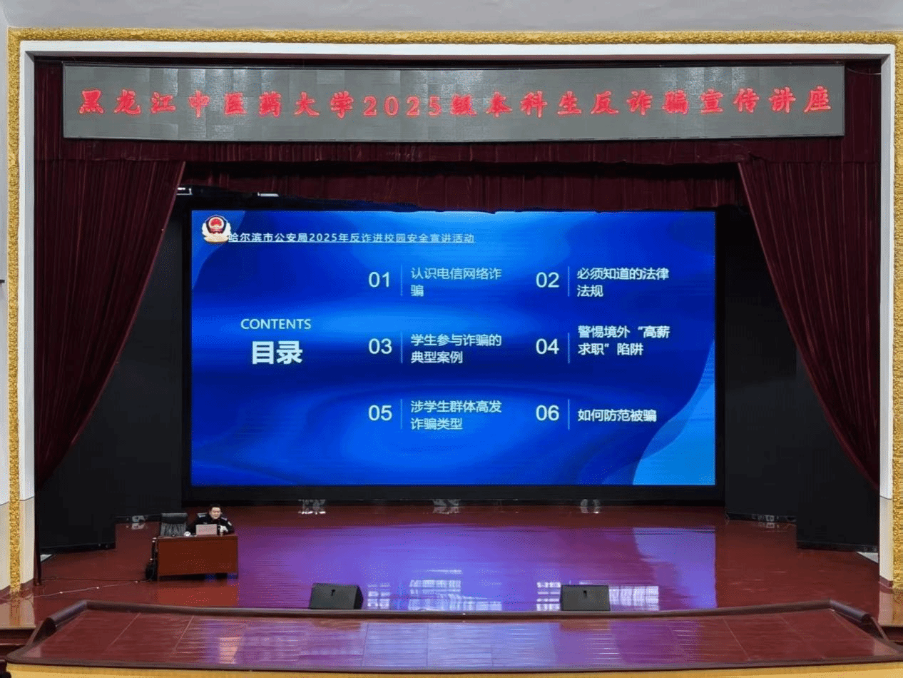 为帮助学生树立正确的金钱观和消费观,提高防范诈骗的能力,10月15日,学生工作部面向2025级本科生开展反诈宣传教育。哈尔滨市公安局香坊分局宣讲团成员郝宇应邀作反诈宣传讲座。