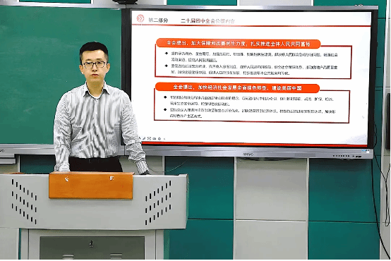 黄敬文围绕全会精神的课堂转化路径,增强思政教育的针对性与实效性进行交流。