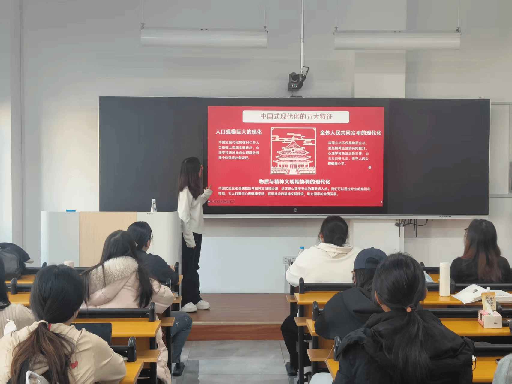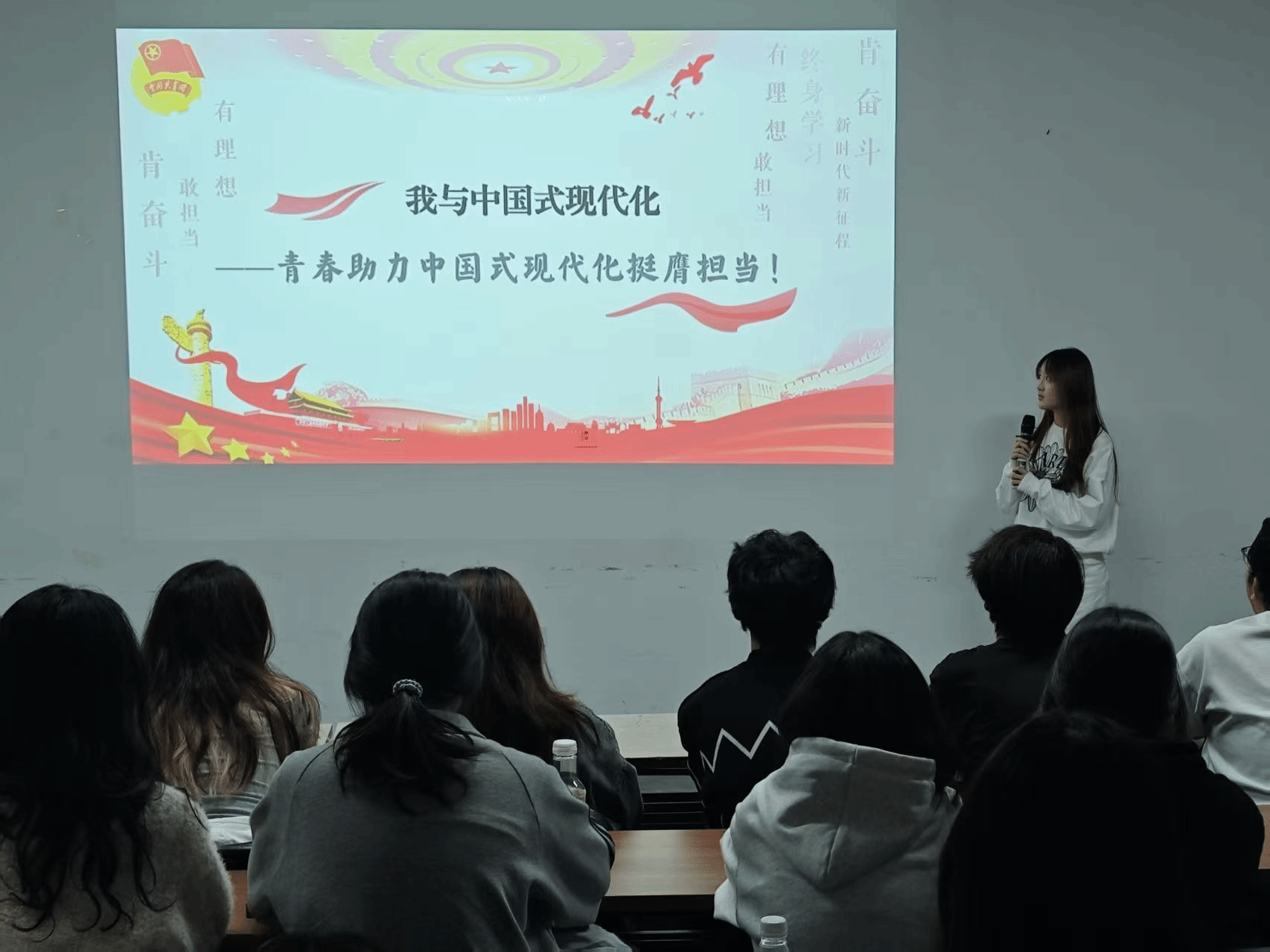 此外,学院各班级紧扣“我与中国式现代化”主题,组织开展了形式多样的主题班会。班会上,同学们通过观看“中国式现代化”科普视频、分享家乡发展变迁案例等形式,深入学习中国式现代化的内涵特征,并展开热议。