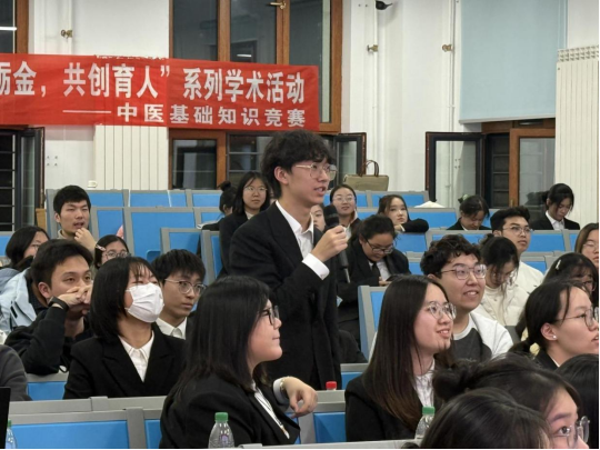 中医基础知识竞赛环节由初赛和决赛组成。11月11日的初赛在第一教学楼举办,260名学院学生集中使用“学习通”软件作答中基、中诊、方剂等中医基础知识,18人晋级决赛;决赛于11月21日在大学生活动中心509室举办,基础医学院伤寒教研室副主任、博士研究生导师、副教授孙许涛老师受邀担任评委。