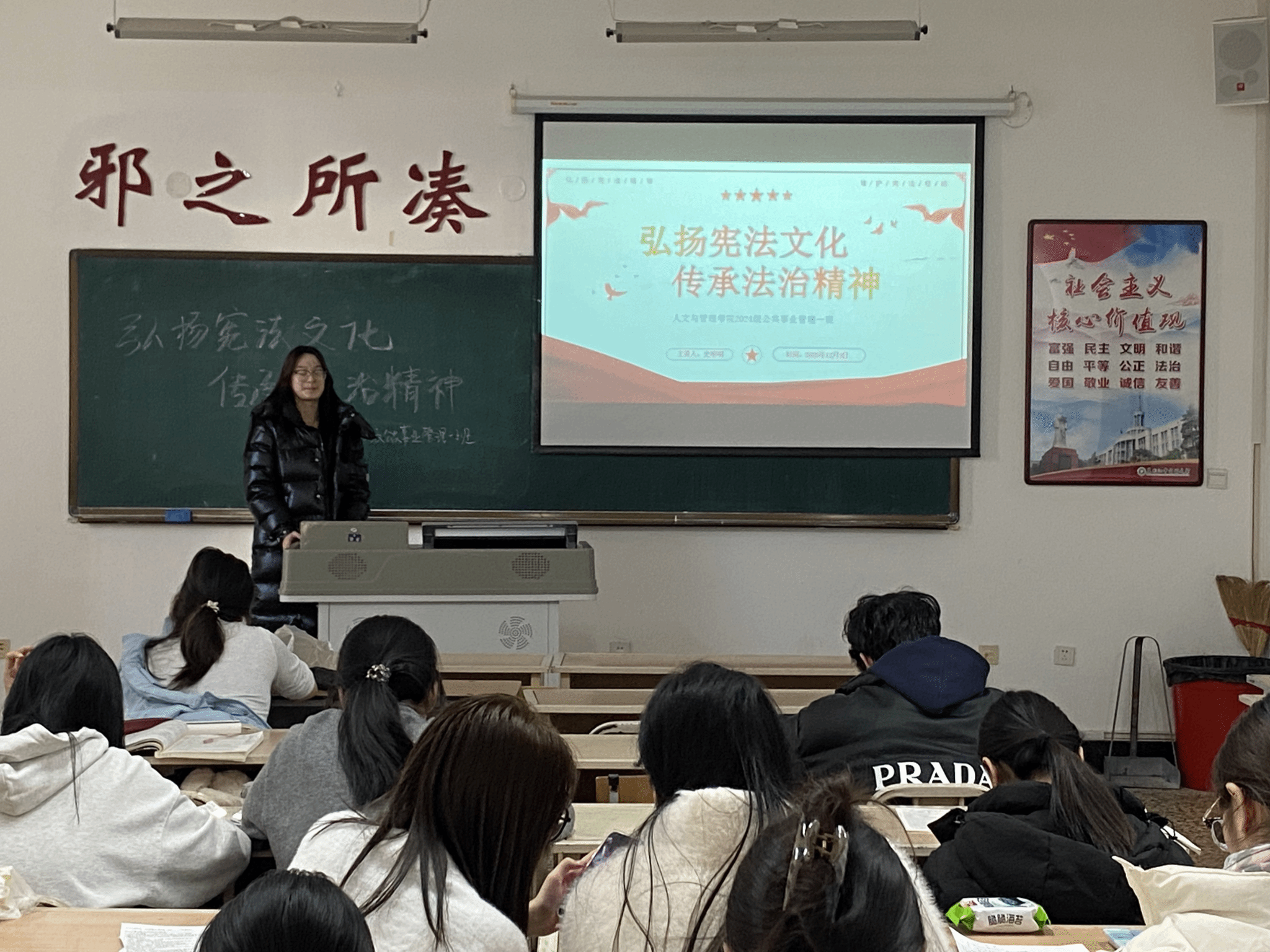 为深入学习贯彻习近平法治思想,推动宪法精神融入校园生活、浸润青年心灵,近日,人文与管理学院围绕“学习宣传贯彻习近平法治思想,推动宪法深入人心”活动主题,开展“宪法学习周”系列活动。通过观看“宪法晨读”直播、开展主题征文活动、观看宣传片、开展主题班会等形式,引导青年学生厚植法治信仰,争做宪法的忠实崇尚者、自觉遵守者、坚定捍卫者。