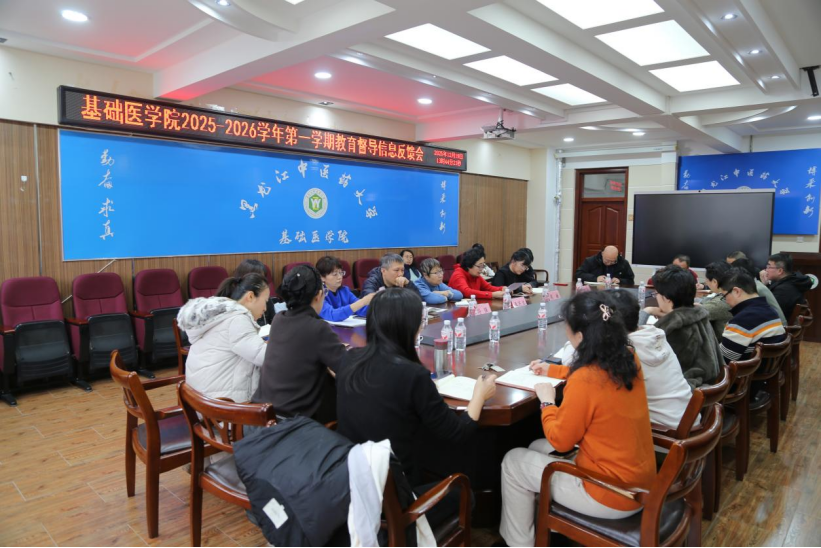 12月19日下午,基础医学院在研究楼412室召开2025-2026学年第一学期教育督导信息反馈会。副院长殷越主持会议,各教研室主任、副主任及教育督导专家参加会议。