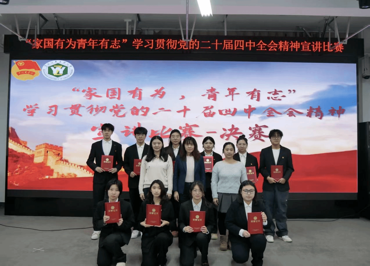 12月15日,校团委举办“家国有为,青年有志”学习贯彻党的二十届四中全会精神宣讲比赛。