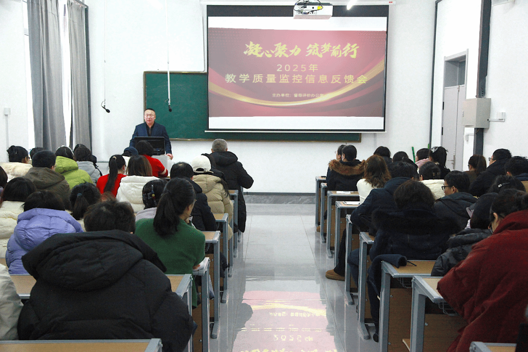 12月31日,佳木斯学院召开2025年度教学质量监控信息反馈会。院长张丽宏、副院长黄敬文、督导评价办公室主任郝美玲、教育督导组组长张涛、专兼职教师及教务科、督导评价办公室相关人员参加会议。会议由黄敬文主持。