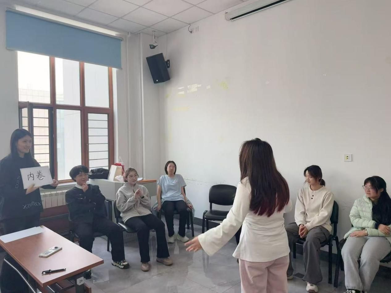 活动中,马浛雯宣读并解读了“不批判、不评价、积极倾听、严格保密” 的团体活动规则,为大家营造安全、信任、温暖的交流空间,让每一位同学都能放下戒备,真诚投入。随后,“破冰握手”“情绪天气预报”“默契猜猜看” 等一系列轻松有趣的互动环节有序展开。
