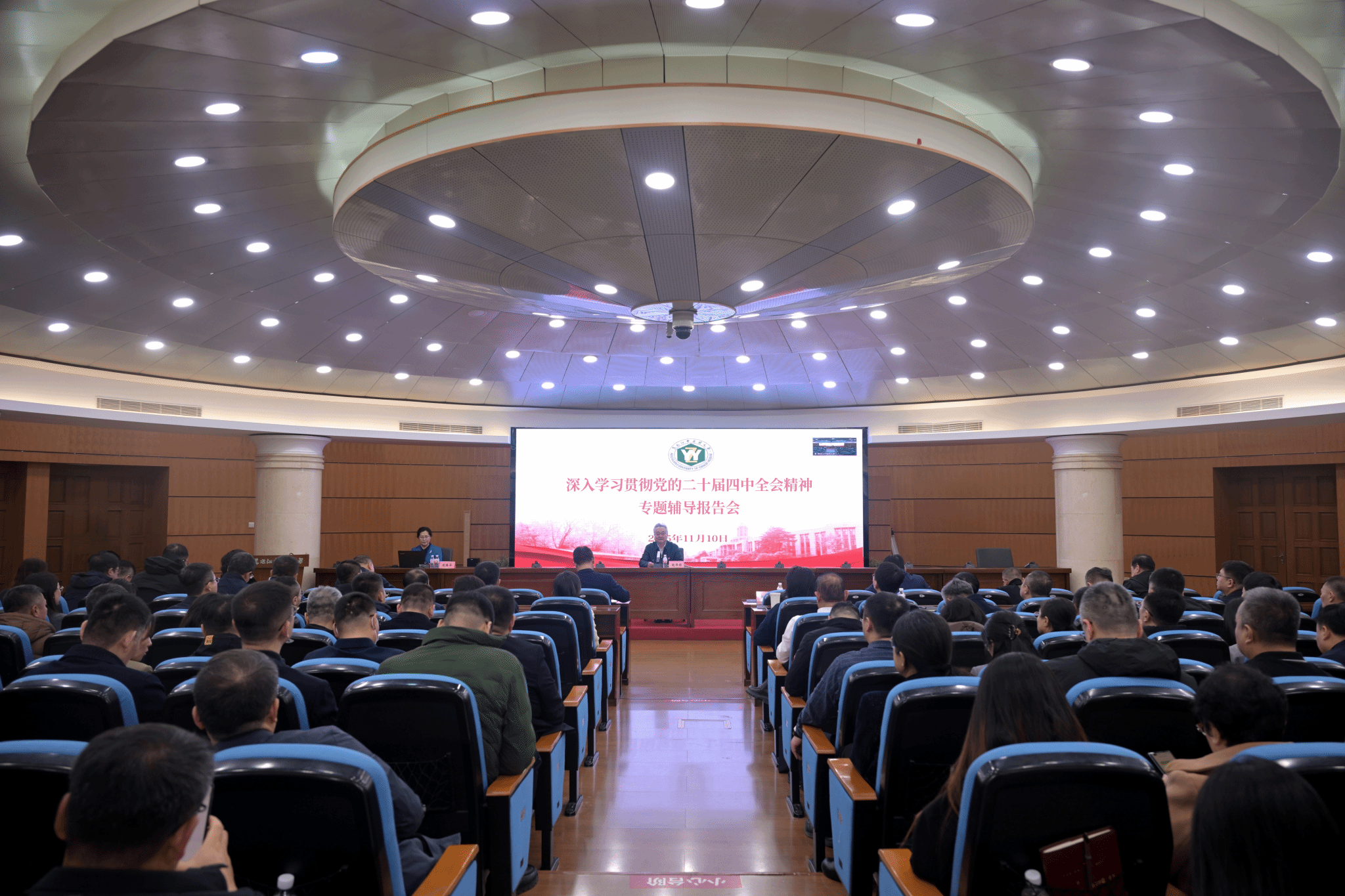 11月10日,学校举办学习贯彻党的二十届四中全会精神专题辅导报告会,黑龙江省委党校专家作辅导报告。学校领导班子成员、全校处级干部、教职工以线上线下结合形式参加学习。报告会由学校党委书记赵炜明主持。
