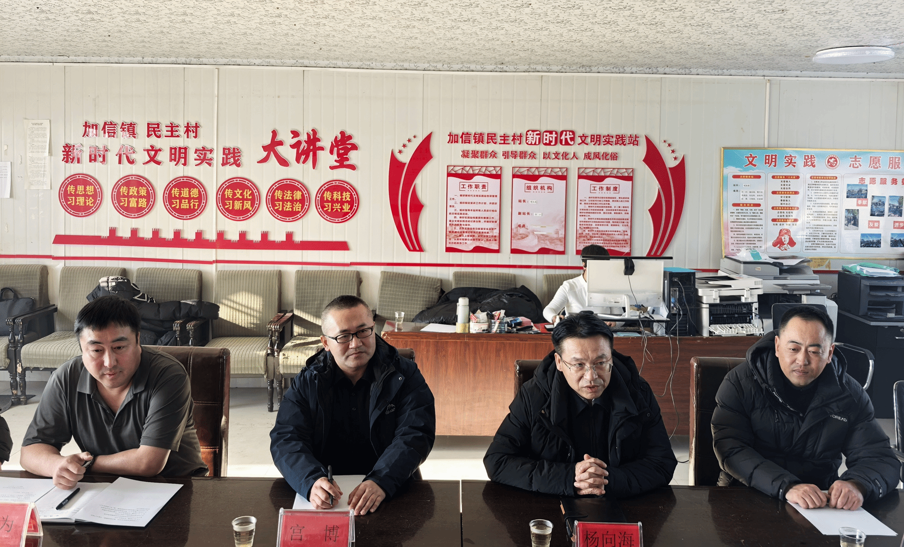 杨向海介绍了延寿县和民主村在乡村振兴工作方面取得的成绩以及未来工作重点和难点,对我校长期以来对延寿县和民主村的帮助和支持表示感谢。乡镇有关负责同志汇报了光伏基地、养鸡场等项目的运营维护情况。