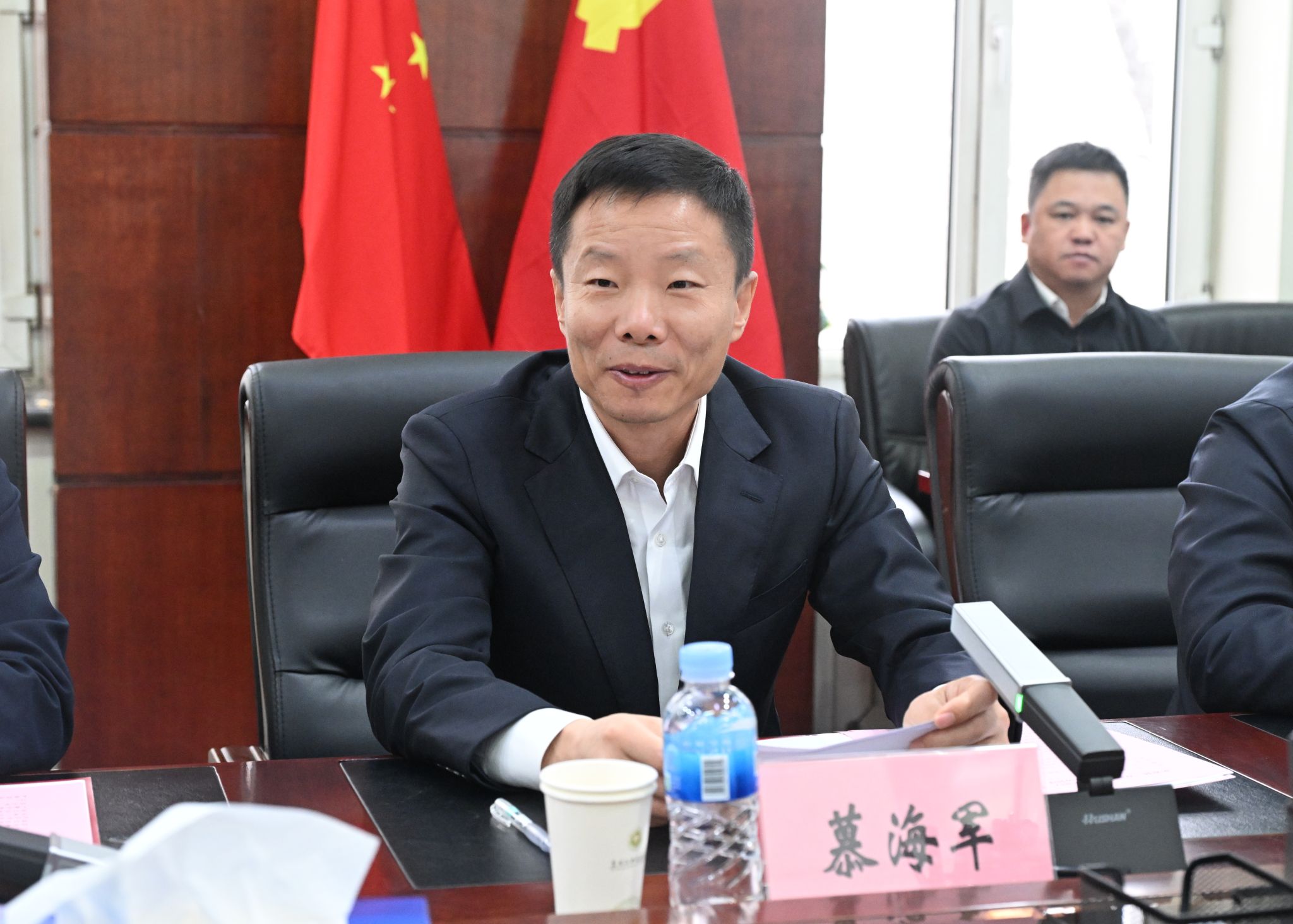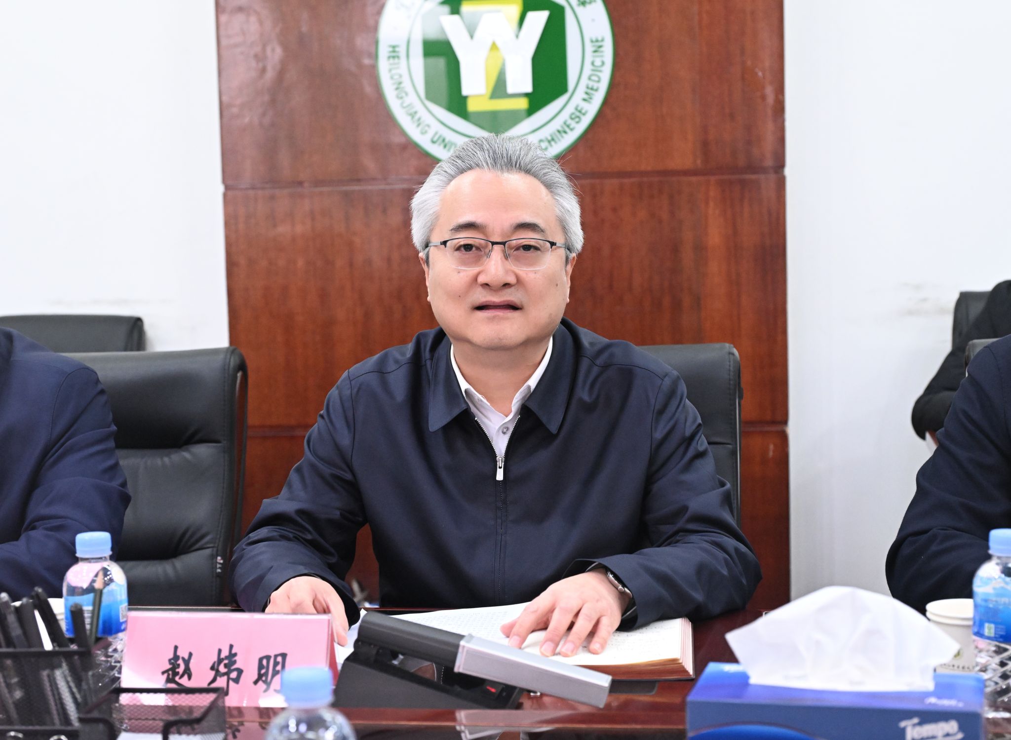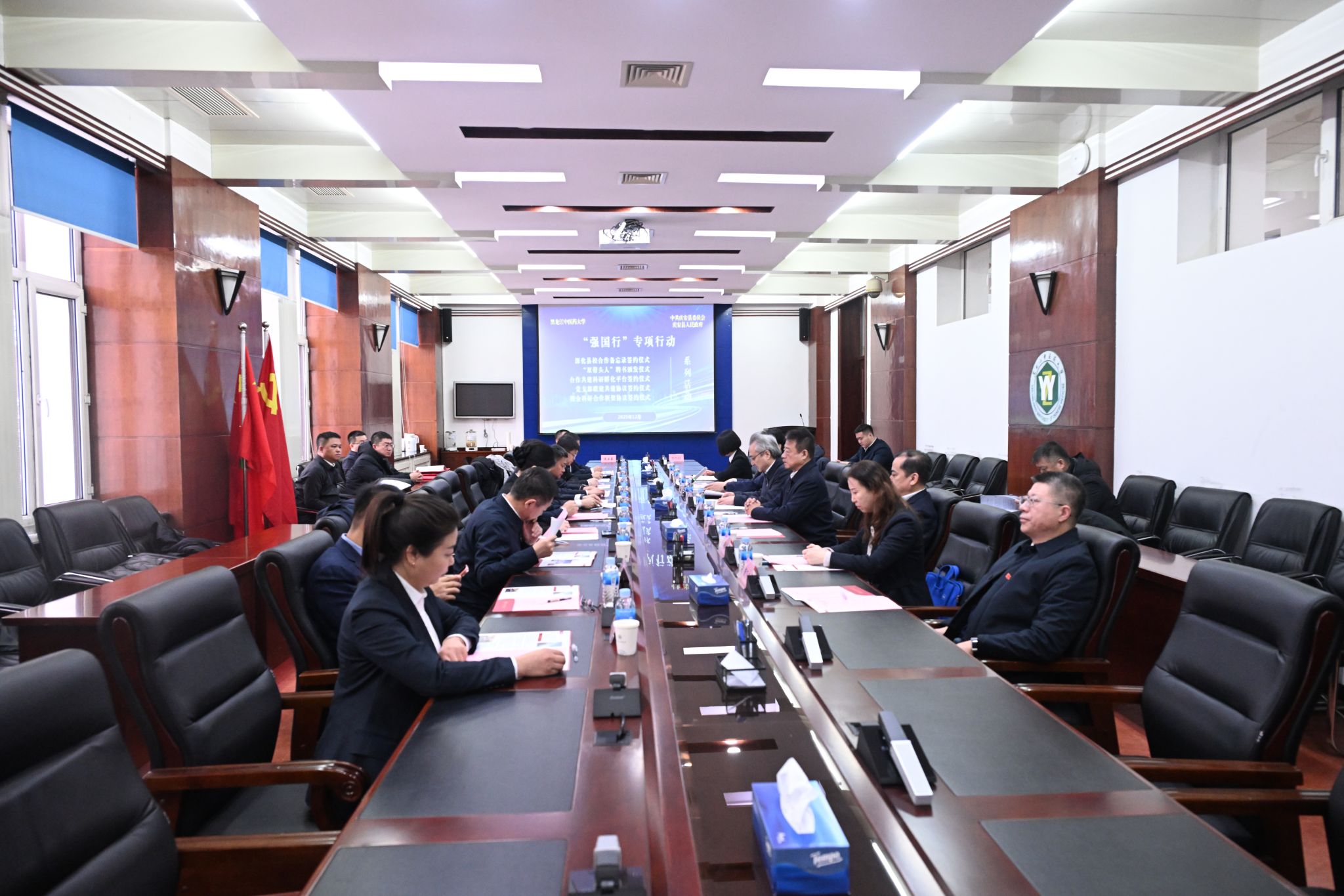 慕海军对我校关心支持庆安发展表示感谢。他指出,庆安正在加快构建具有庆安特色的“3+3+N”现代化产业体系,希望双方在前期合作基础上,依托“强国行”专项行动,进一步深化合作关系,推动庆安资源优势与高校科研优势精准对接,合作共建科研孵化平台,加速成果转化和项目落地,为庆安高质量发展和“健康中国”建设注入强劲中医药力量。
