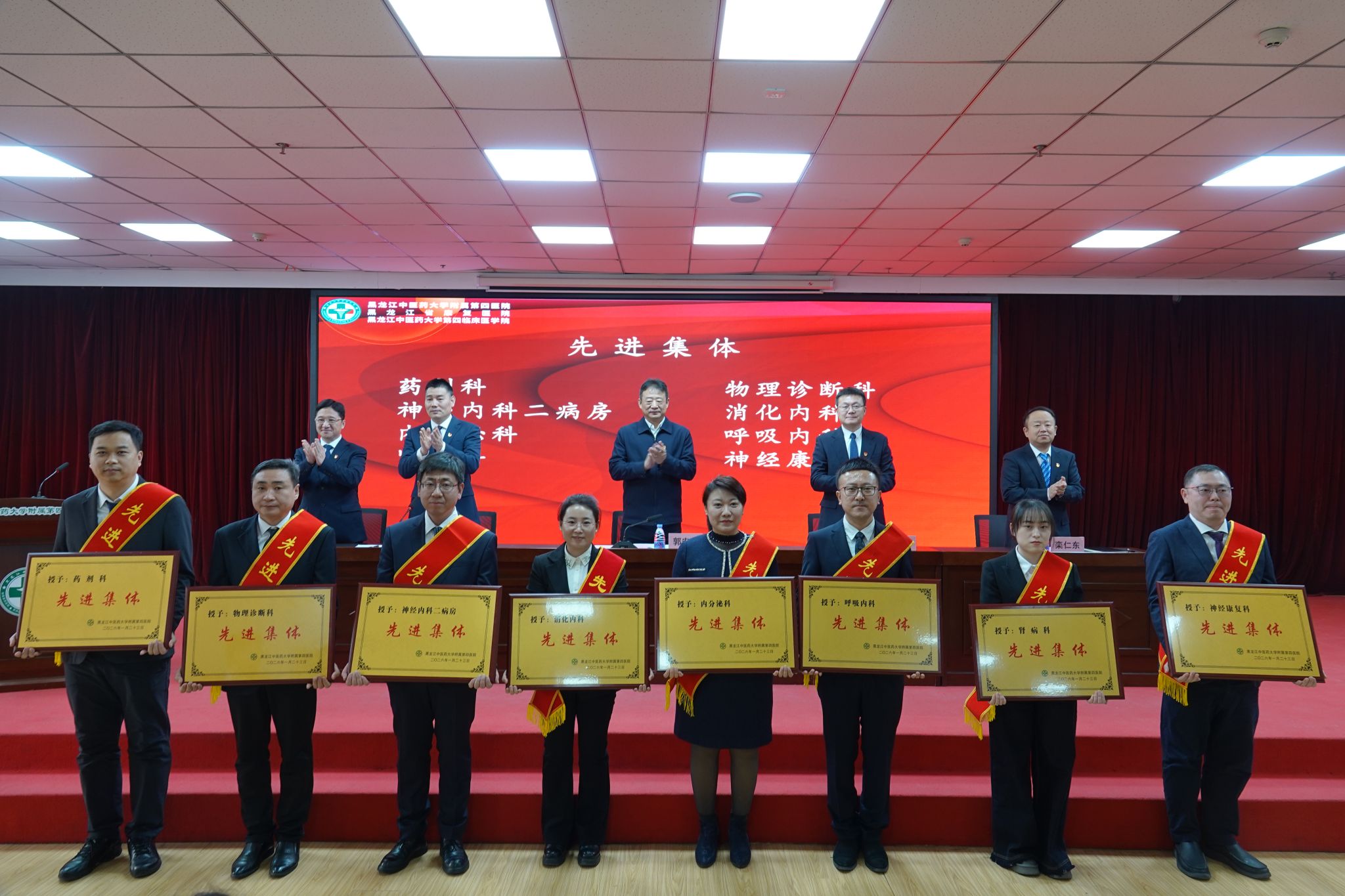 1月28日下午,附属第四医院(第四临床医学院)召开2025年度总结表彰大会。学校校长郭宏伟出席会议并讲话,医院院长刘贵军作2025年度工作总结报告,医院党委副书记、副院长李世龙主持大会。医院班子成员栾仁东、周海纯,先进集体代表、先进个人获得者,全体中层干部、行政科室全体及业务科室代表参加会议。