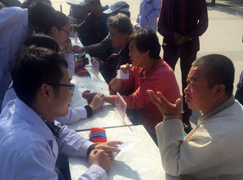 | 研究生志愿者为居民义诊 |