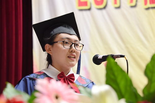 “青春无悔但毕竟要成为记忆,如今毕业时节已悄然来到,齐家治国、立身立业的道路需要每一位同学勇敢而坚实地走好。”孙忠人校长向即将踏上人生新征程的毕业生提出三点希望:一要勤奋自强,努力拼搏。“勤奋是我们追求美好生活的基础,是一个人乃至一个民族成长进步、生生不息的力量源泉,更是一种人生态度,决定一个人生命重量和质量。”他希望同学们始终勤奋自强、敬业奉献,通过不懈努力到达成功的顶点。二要求真务实,脚踏实地。“求真是一种人生的发展方向,也是我们终身追求的目标;务实是一种大智慧,是收获人生价值的一种重要保障。”他希望同学们立足本职工作,埋头苦干,坚持从小事做起,从平凡处开始,稳重、坚实地走好人生的每一步。三要博采众长,兼收并蓄。“博采是进步的阶梯,是通向成功,实现理想的路径。”他希望毕业生同学们努力吸取生活、学习中点滴智慧,博采众长,兼收并蓄,择善而从。四要开拓创新,不断发展。“开拓创新需要有勤奋自强,顽强拼搏的人生态度,需要有求真务实,脚踏实地的人生智慧,更需要有博采众长,兼容并蓄的人生理念。”孙忠人校长希望同学们铭记“勤奋、求真、博采、创新”的校训精神,不忘初心,不忘母校的期望,在今后的工作和学习过程中不断取得新的进步。