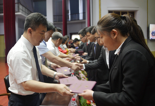 | 孙忠人校长向获得学士学位的学生代表颁发学士学位证书 |