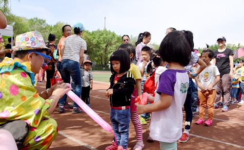 本次趣味亲子运动会特别为家有3至7周岁孩子的教职工家庭设计了“跳跳袋接力赛”、“毽球踢准计分赛”、“传球接龙接力赛”、“无敌风火轮”四个游戏项目,所有比赛项目需由家庭成员们共同完成。运动场上,家长与孩子们全身心投入,并肩作战,通力合作,尽情享受比赛带来的乐趣。比赛间歇,校工会组织各个教职工家庭合影留念,用相片记录快乐,留住美好瞬间。校工会还邀请“小丑”来到活动现场为孩子们制作造型精美、形态各异的手工气球,手拿心仪气球的小朋友们露出天真无邪的笑容,活动现场气氛其乐融融。
