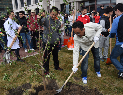 本次活动由后勤管理处处长郑剑主持。学校相关部门负责人参加义务植树活动。