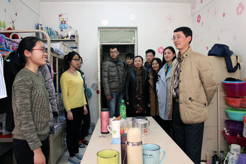 3月13日下午,学院党委副书记、副院长李全带领学生辅导员老师们深入各学生寝室,对寝室卫生状况和安全用电情况等进行了认真检查,并提醒同学们要切实增强安全防范意识,加强自律与他律,自觉遵守学校各项安全管理制度,禁止使用违规电器,同时也要注意春季饮食安全卫生等问题。